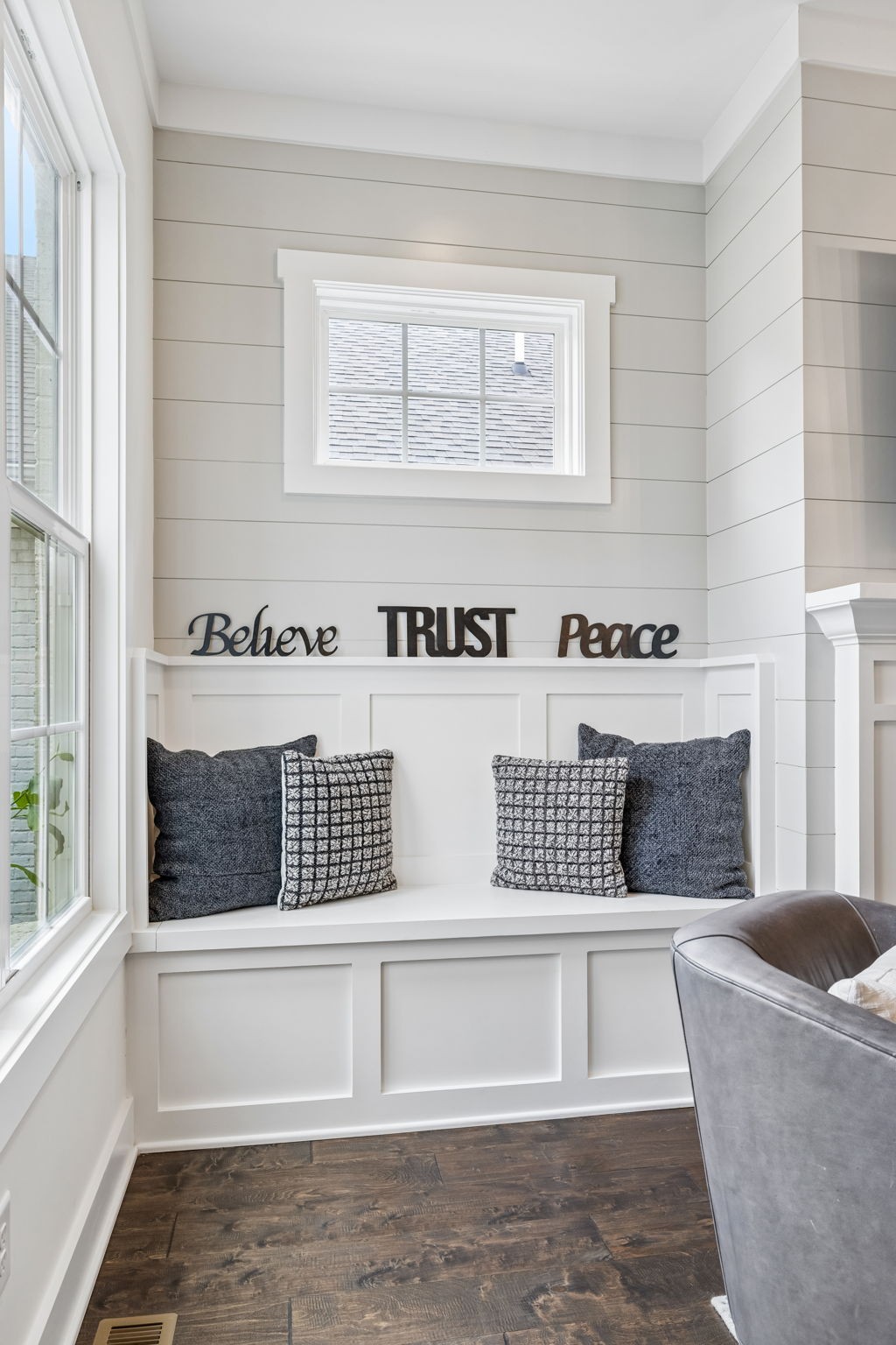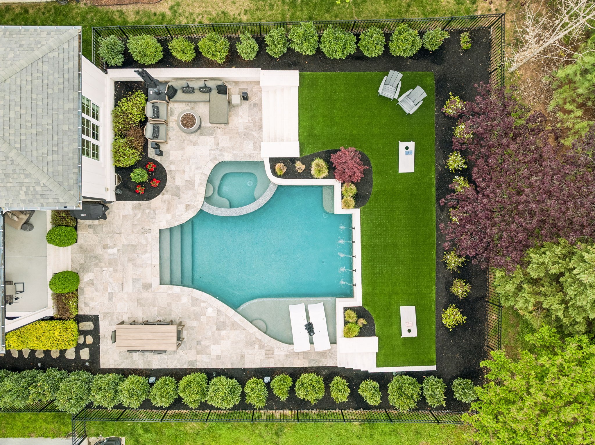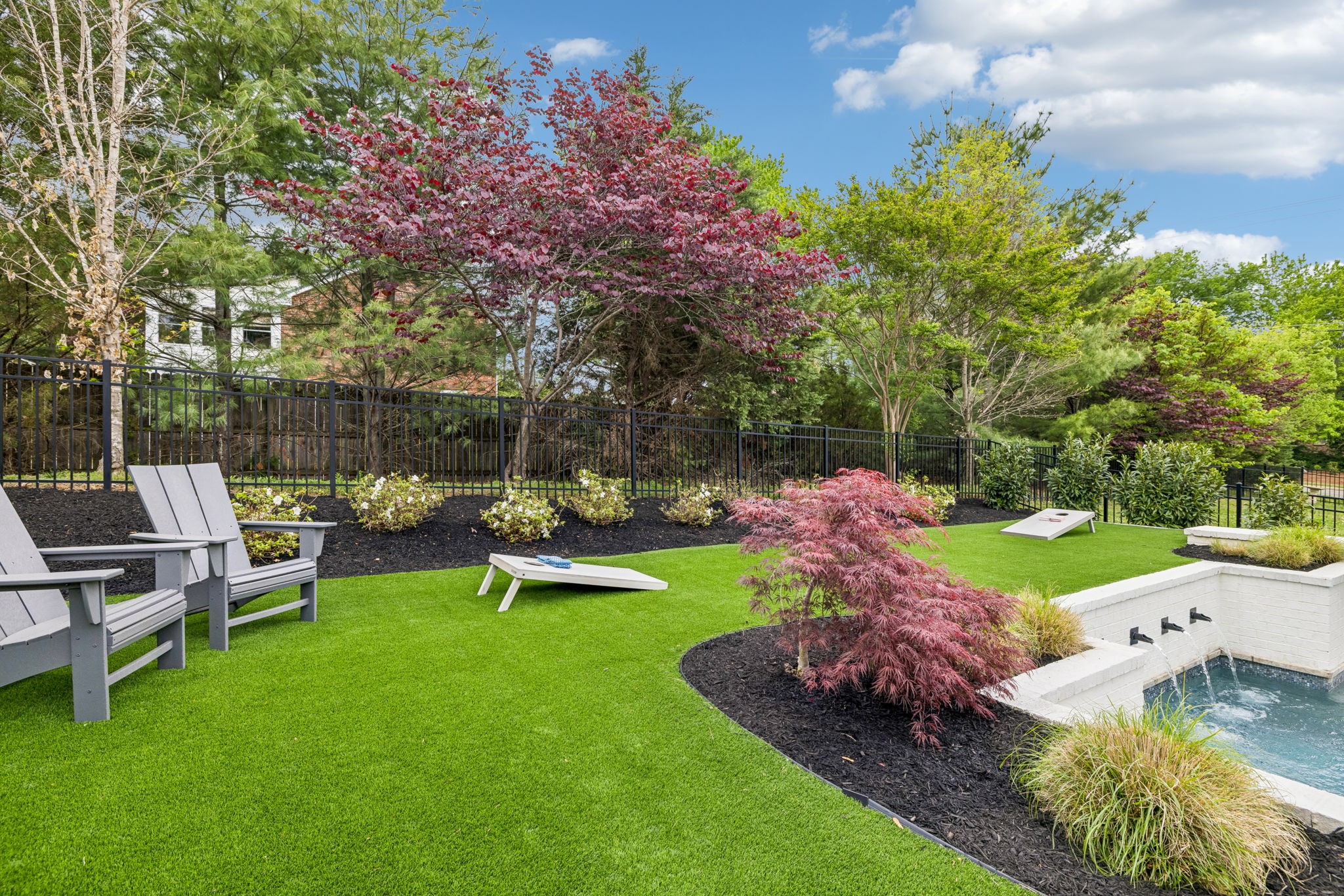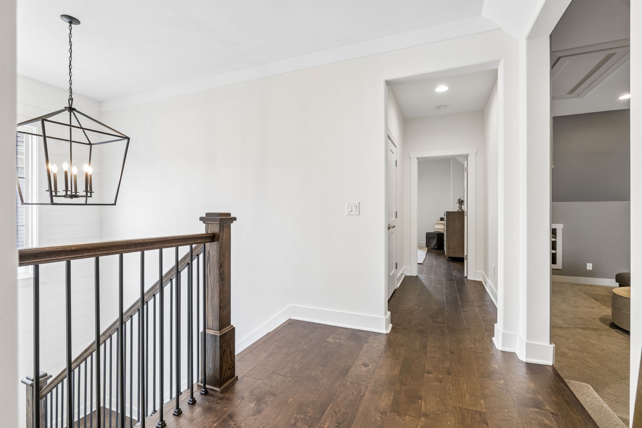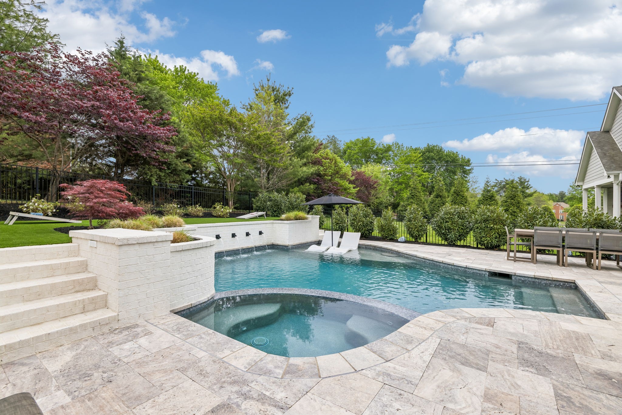 Welcome to 408 Dragonfly Court, a custom-built Hidden Valley Homes residence offering refined living just one mile from historic downtown Franklin and The Factory. Built in 2019, this 4-bedroom, 4-bath home blends thoughtful design, elevated finishes, and exceptional indoor-outdoor living. The main level features both the primary suite and guest suite, along with a functional built-in workspace seamlessly integrated into the laundry room. The chef's kitchen is designed for both everyday living and entertaining, showcasing ceiling-height custom cabinetry, a premium Cafe appliance suite, an oversized island, and a dedicated wine/cocktail area. Throughout the home, you'll find engineered hardwood flooring, upgraded tile, custom trim and shiplap, designer lighting, and Sherwin-Williams Duration paint. All closets are fully customized, and each bathroom features frameless glass shower enclosures for a clean, modern aesthetic. Step outside to a professionally designed backyard retreat featuring a saltwater Gunite pool and spa (2023), sun shelf, fire pit, and multiple gathering spaces. The covered rear porch with retractable screens by Nashville Retractable Screens, built-in gas lines, and integrated audio creates a true year-round outdoor living experience. Additional highlights include a tankless water heater, encapsulated crawlspace, extensive storage, ADT security, and premium audio/visual equipment that remains with the home. A rare opportunity to enjoy luxury, convenience, and lifestyle in one of Franklin's most desirable locations.